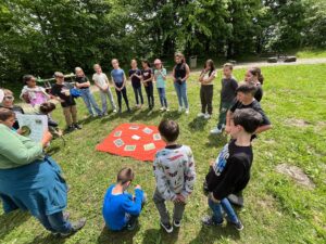 Die Wanderung führte uns über den idyllischen Kirchweiher bis hin zur beeindruckenden Burg – oder umgekehrt. Zur Mittagszeit wurde mit beiden Klassen gemeinsam gebrätelt, was den Tag perfekt abrundete.