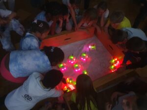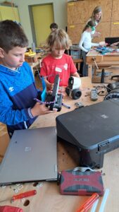 Unter dem Motto „Medien und Informatik“ besuchten die Schülerinnen und Schüler im Schulhaus Rainheim während der Projektwoche 4 Ateliers: Roboter basteln, Programmieren, Medien, Sortieren und Codieren. In klassengemischten Teams sammelten die Kinder vielfältige und interessante Erfahrungen in der digitalen und analogen Medienwelt.