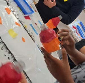 340 fleissige Hände haben gestern für den Fasnachtsumzug im Rainheim geschnitten, geklebt und gestrahlt. Was da wohl Farbiges entstanden ist?