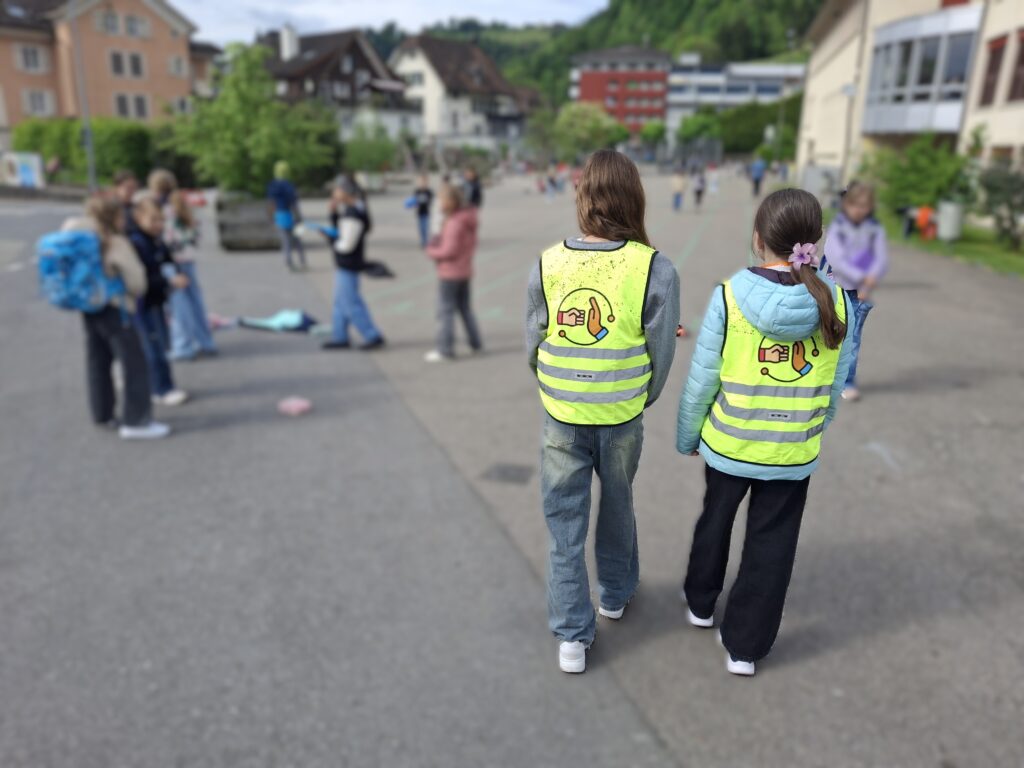 FriedensheldInnen </h2 > Wenn man in der grossen Vormittagspause den Pausenplatz Rainheim, Markt oder Steinhuserberg betritt, fallen einem vielleicht einige Kinder in Leuchtwesten auf. Dies sind nicht etwa ErstklässlerInnen oder KindergärtnerInnen – nein, das sind die neuen FriedensheldInnen. Einen Mittwochnachmittag lang wurden diese Kinder darin ausgebildet, in Konflikten zu helfen und darauf zu achten, […]